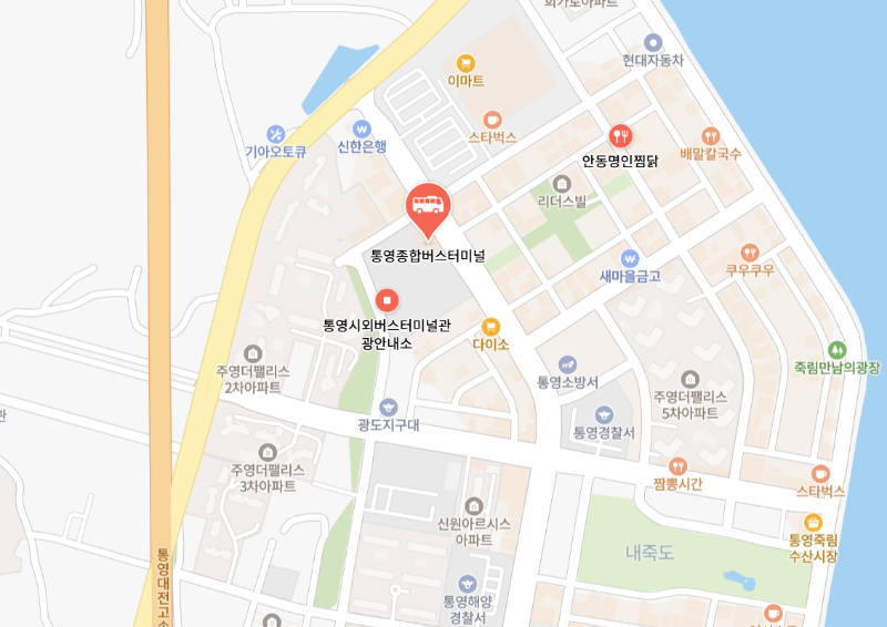 주소 : 경남 통영시 광도면 죽림4로 24 통영버스종합터미널