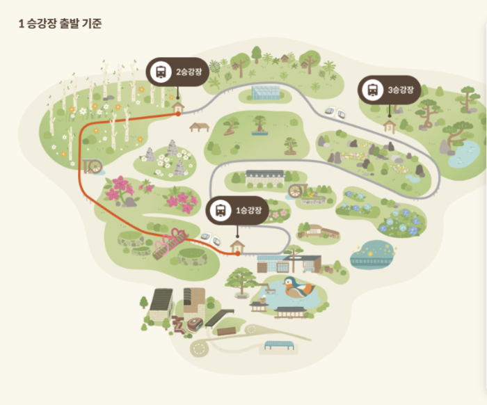 모노레일은 화담숲 서쪽 이끼원 입구에서 화담숲 정상-분재원 사이를 지나는 총 운행 1,213m로 총 소요 시간약 20분 입니다.