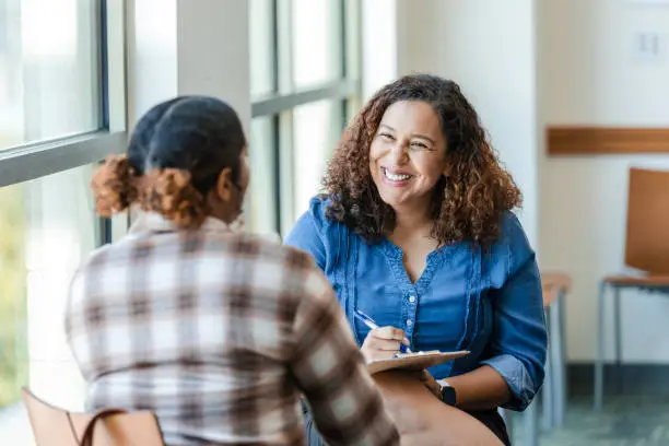 실업급여 수급자격 인정 신청서를 제출하고 담당자와 상담합니다.