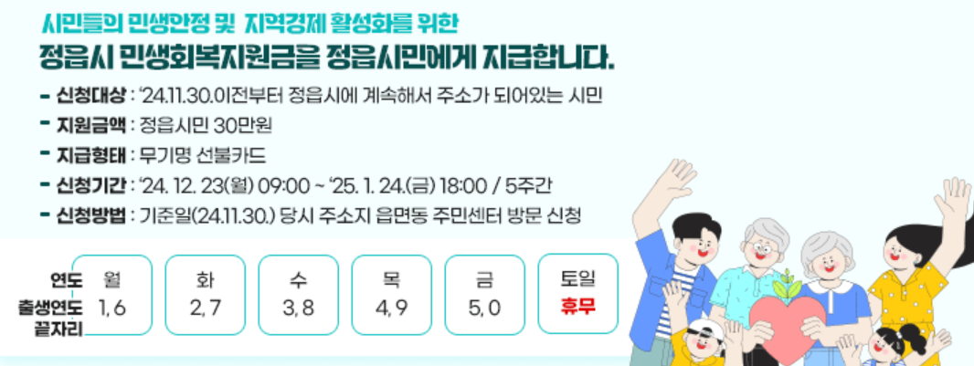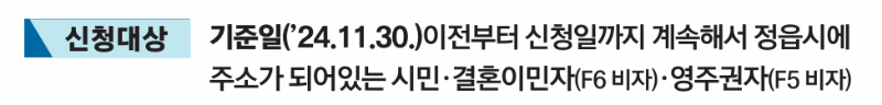 • 지원대상 : 정읍시 전 시민(기준일 2024.11.30)